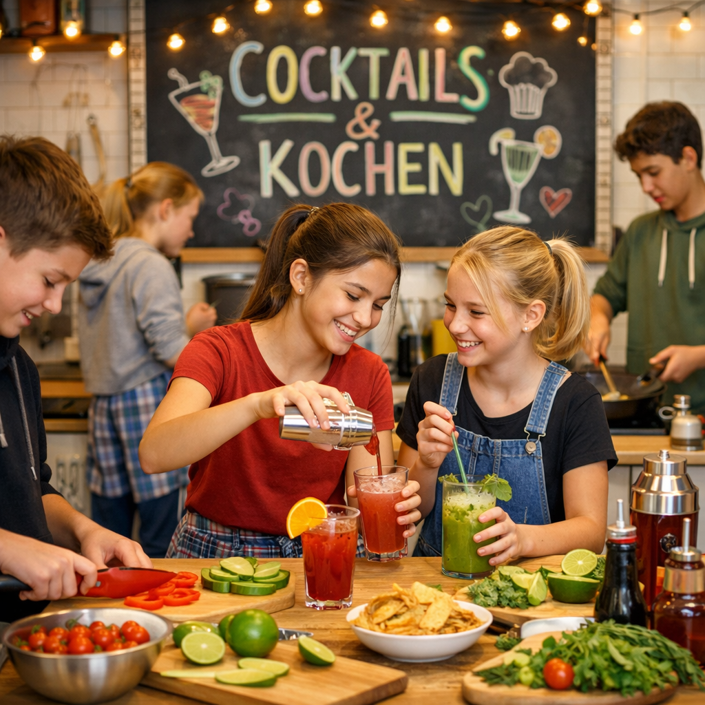 Bei diesem Angebot kochen Kinder und Jugendliche gemeinsam einfache Gerichte und mixen alkoholfreie Cocktails.